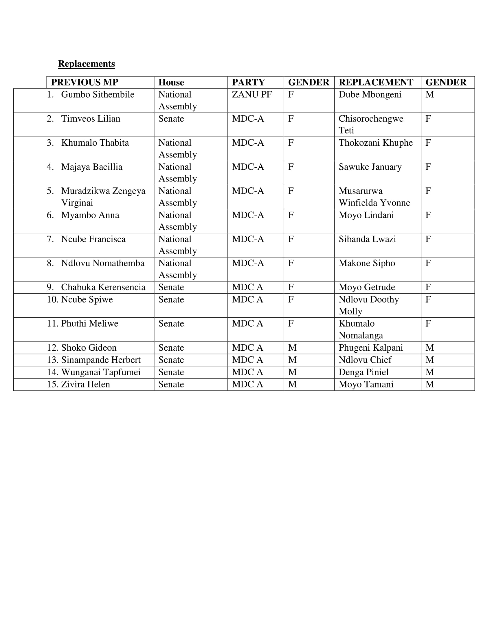 Posted inStories Full official list of who has been recalled from MDC-Alliance and who has replaced who Posted by Charles Rukuni November 4, 2020No Comments Here is the list of those who replaced some of those recalled: (240 VIEWS) Pages 1 2 Charles Rukuni The Insider is a political and business bulletin about Zimbabwe, edited by Charles Rukuni. Founded in 1990, it was a printed 12-page subscription only newsletter until 2003 when Zimbabwe's hyper-inflation made it impossible to continue printing. View All Posts Post navigation Previous Post Bulawayo records one more coronavirus deathNext PostZimbabwe legislator says you cannot celebrate surplus amid poverty and joblessness