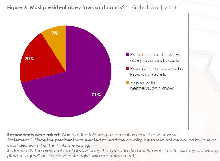 President Robert Mugabe must obey the laws of Zimbabwe and court decisions even if he thinks they are wrong, a survey just released by Afrobaromter says.